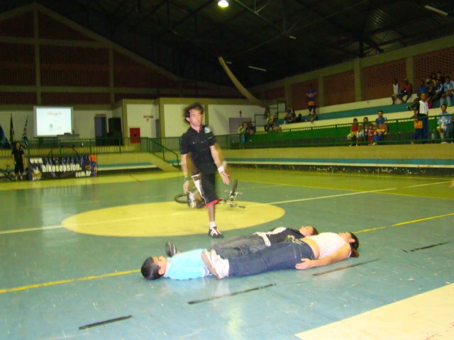 Cerimônia de abertura do Campeonato Municipal de Futsal com apresentao da equipe Bike Seisson ganhadora do se vira nos 30 (quadro do Domingo do Fausto).