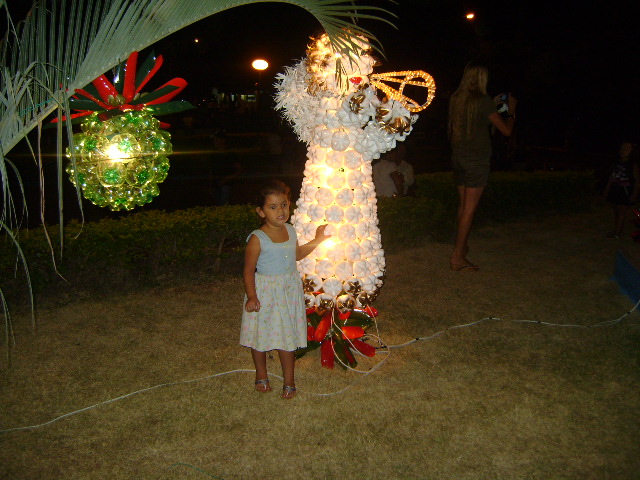 Prefeitura de Rosana Inaugura em Rosana e Primavera nas praças centrais, enfeites natalinos feitos com materiais reciclados.